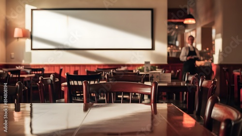 Inviting Restaurant Interior with Blank Whiteboard on Wall Mockup