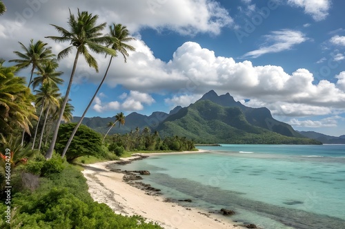 beach, sea, sand, ocean, water, island, sky, tropical, coast, landscape, vacation, travel, nature, paradise, summer, bay, shore, tree, palm, holiday, wave, cloud, beautiful, hawaii, turquoise