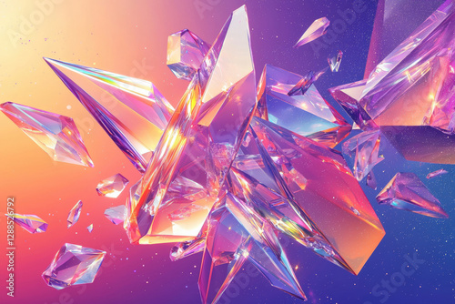 crystal, iridescent, abstract, geometric, gemstone, fractal, spectrum, glow, shine, texture, background, design, artwork, futuristic, vibrant, modern, luxury, precious, space, sparkle, light, refraction, transparent, aesthetic, mineral, flocked, purple, pink, orange, blue, holographic, faceted, digital, rendering, graphic, element, wallpaper, concept, fantasy, dreamlike, energy, magic, cosmic, celestial, star, pattern, illustration, artistic
