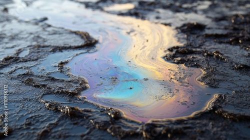 oil, slick, iridescent, rainbow, colours, puddle, water, ground, dark, surface, spill, pollution, environmental, damage, texture, rough, macro, nature, liquid, abstract, pattern, light, shadow, contrast, vibrant, natural, beauty, detail, photo, image