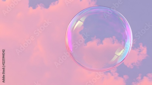 Iridescent Soap Bubble Floating in Pastel Sky