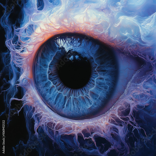 Iris humain en macro gros plan avec détails et textures uniques, couleurs vibrantes