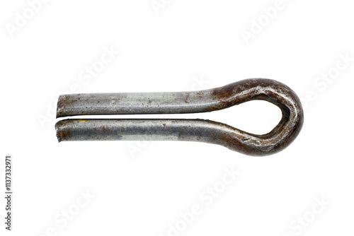 Iron cotter pin on a white background. Cotter pin close-up.