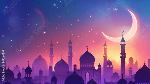 ramadan, islamic, mosque, night, islam, sky, crescent, moon, vector, illustration, design, religion, muslim, culture, tradition, holy, month, faith, prayer, fasting, charity, community, peace, spirituality, blessing, forgiveness, mercy, hope, eid, celebration, festival, architecture, dome, minaret, silhouette, star, cloud, peaceful, spiritual, devotion, contemplation, india
