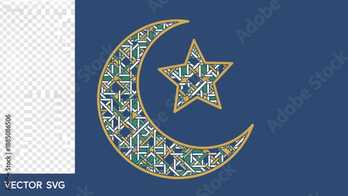 islam, crescent, moon, star, pattern, geometry, symbol, ramadan, eid, muslim, arabic, ornate, design, illustration, vector, graphic