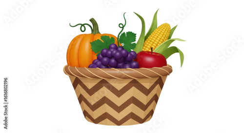 basket, autumn, harvest, pumpkin, grape, corn, apple, fruit, vegetable, fall, isolated, thanksgiving, food, healthy, organic, seasonal, decoration, still life, illustration, drawing, art, design, clip art, artwork, artistic, autumn, cornucopia, abundance, celebration, festive, ripe, fresh, natural, rustic, country