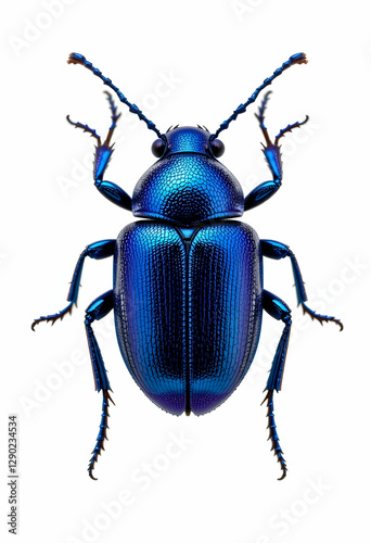Isolated Blue Beetle Close-up with Shiny Shell and Detailed Legs