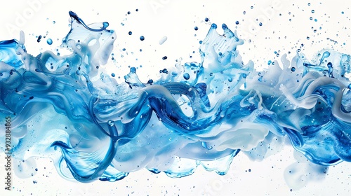 Isolated blue water swirling and splashing with tiny bubbles. Generative Ai