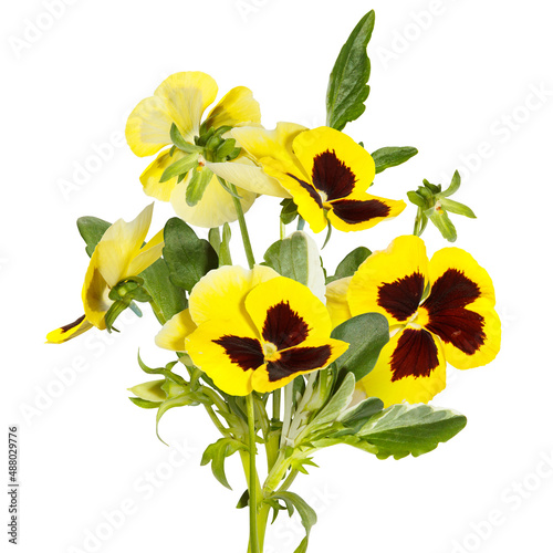 Isolated bouquet of yellow pansy flowers on white background. Anny's eyes