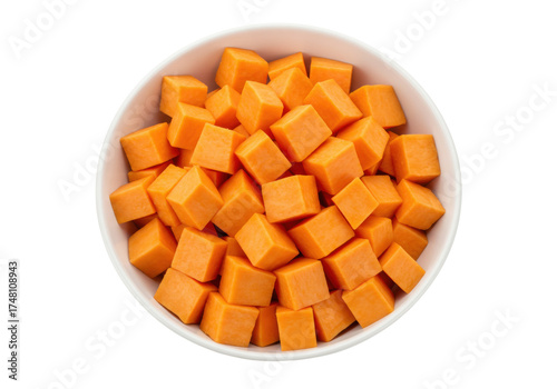 Isolated bowl of cubed sweet potato ready for cooking, a healthy and nutritious ingredient