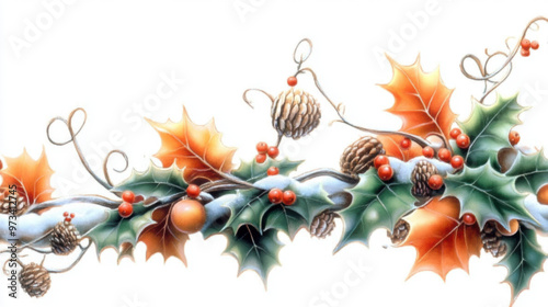 christmas wreath, isolated image, holiday season, traditional, evergreen, christmas decoration, christmas spirit, ornamental, winter, seasonal, christmas, decoration, holiday, christmas, leaf, celebration, berry, illustration