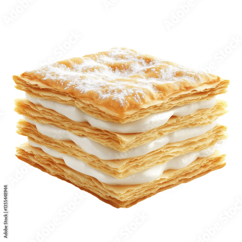 Isolated French mille feuille dessert showcasing layers of pastry and cream