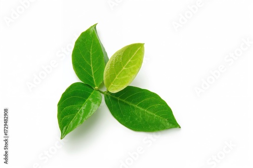 Isolated Fresh Kaffir Lime Leaves on a White Backdrop, Essential Ingredient for Asian Cuisine