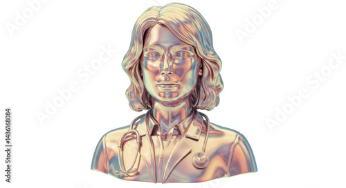 Isolated Holographic Doctor Bust with Stethoscope Symbolizing Healthcare