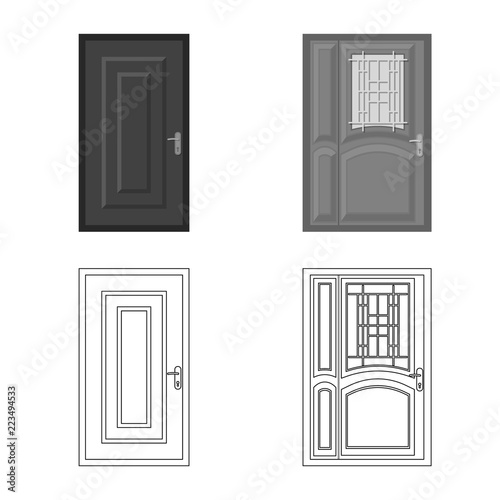 Isolated object of door and front icon. Set of door and wooden stock vector illustration.
