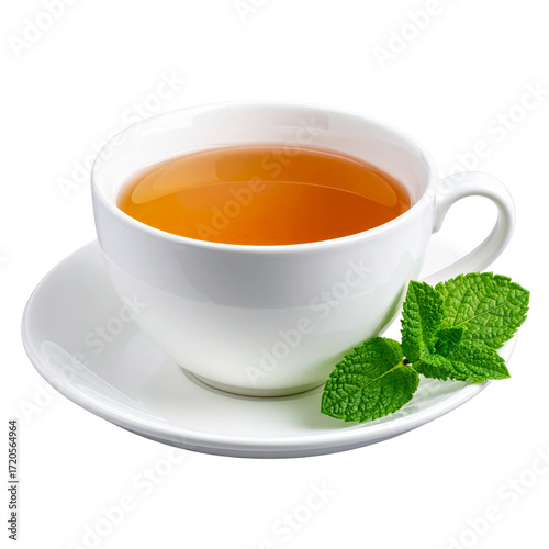 tea, cup, drink, white, beverage, hot, breakfast, isolated, saucer, food, green, healthy, mug, black, mint, hot drink, herbal, teacup, leaf, liquid, lemon, object, china, brown, closeup