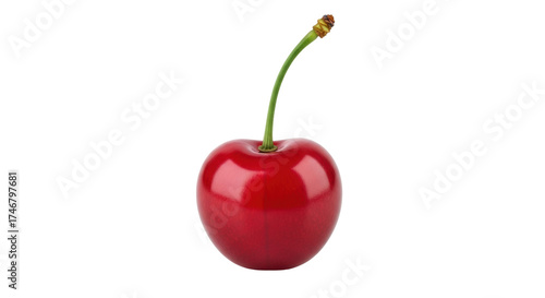 Isolated red cherry fruit with a stem, glossy and smooth, ready for summer dessert, healthy eating