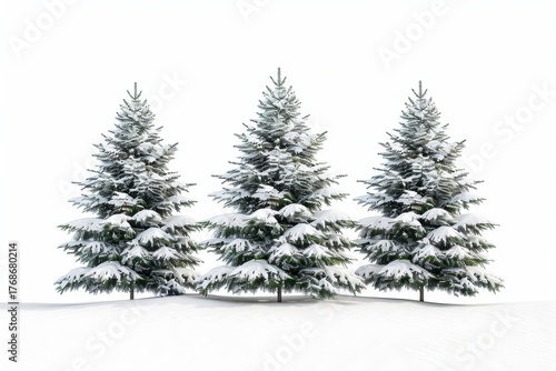 Isolated snowy Christmas trees on white background, perfect for holiday banners, winter illustrations, greeting cards, and seasonal digital artwork.