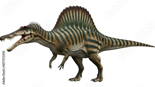 Isolated spinosaurus walking, carnivorous dinosaur reptile, prehistoric animal of the Jurassic era