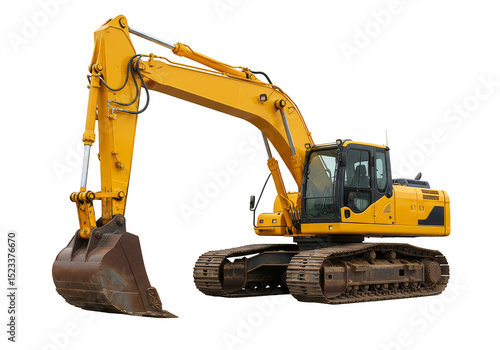 Isolated Transparent Background of Yellow Excavator Heavy Machinery