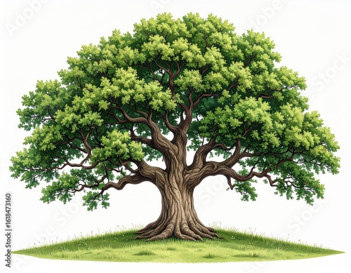 Isolated tree branches with vibrant green leaves on a clean white background lush
