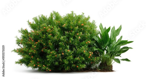 Isolated tropical shrub and flowering plant on a bright white backdrop