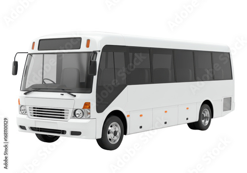 Isolated white passenger transport bus viewed from an angle ready to transport people safely