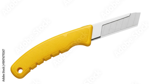 Isolated yellow utility knife with segmented blade for cutting cardboard and paperboard
