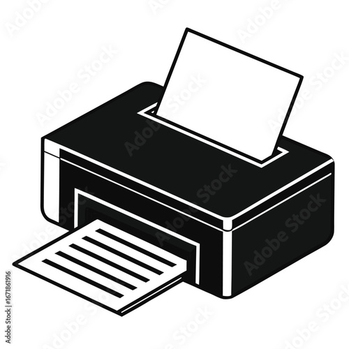 printer, printing, office, technology, equipment, machine, document, paper, output, copy, scan, fax, electronic, device, black, white, isometric, illustration, graphic, icon, symbol, modern, business, work, datum, information