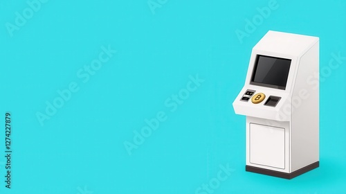 Isometric clean vector of a crypto ATM, futuristic financial transactions concept