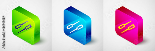 Isometric Food chopsticks icon isolated on grey background. Wooden Korean sticks for Asian dishes. Oriental utensils. Square button. Vector