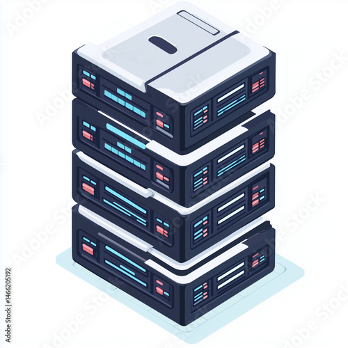 isometric, database, server, storage, vector, clip art, hand-drawn, illustration, white background, network, technology, cloud, digital, infrastructure, hardware, hosting, computing, information, information technology, system, minimal, schematic, modern