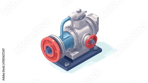 isometric, engine, motor, machine, equipment, technology, industrial, mechanical, metal, steel, shiny, polished, valva, red, blue, pipe, footed, construction, machinery, automation, power, manufacturing, engineering, device, mechanism, part, component, system, object, illustration, design, graphic, art, drawing, cartoon, animated, clean, modern, technical, detail, precision, perspective, isolated, white, background, shadow, nobody, still, life