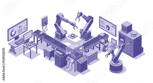 automation, factory, industrial, robotic, technology, manufacturing, assembly, isometric, machinery, engineering, production, conveyer, computer, control, process, futuristic, efficiency, innovation, design, system, equipment, electronic, network, monitoring, advancement, industry, workspace, automated, digital, operation, precision, workflow
