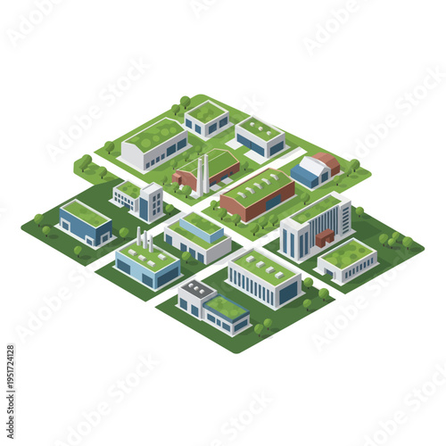 industrial, park, modern, architecture, green, roof, building, sustainable, urban, planning, isometric, view, city landscape, environmentally friendly, environment, energy, efficiency, design, structure, construction, real estate, development, commercial, business, facility, complex, layout, aerial, perspective, illustration, graphic, vector, art, concept, innovation, growth, progress, future, technology, industry, manufacturing, warehouse, office, factory, plant, site, area, district, neighbourhood