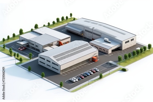 Isometric View Production Hall with Machinery and Assembly Lines, on an Isolated White Background, Generative AI