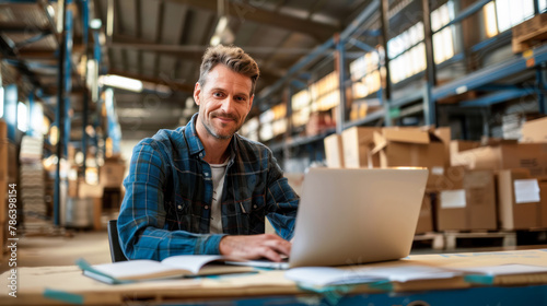 storage, warehouse, men at work, laptop, job, delivery, box, shipping, package, business, people, distribution, person, industry, man, factory, transportation, packer, good, shipment, stock, picker, cardboard, working, inventory, young, work, cargo, pack, holding, parcel, depot, blue-collar, export, profession, economy, logistic, warehouseman, corporate, order, wholesale, merchandise, service, occupation, online, shopping