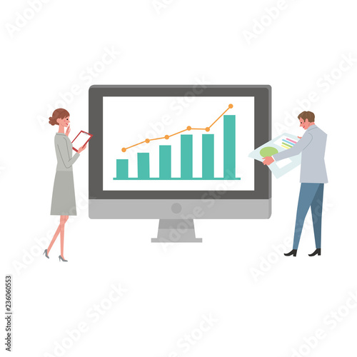 image, illustration, business, work, vector, chart, personal computer, net, network, lead, businessman, corporation, work, figure, achievement, success, achievement, contract, man, woman, suit, ai, cloud, people, japanese, smile, young, cyberspace, copy space, communication, light, notebook, calculation, economic, corporate, bar chart, chart, grow