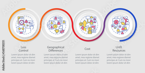 IT staffing service disadvantages loop infographic template. Hiring agency. Data visualization with 4 steps. Timeline info chart. Workflow layout with line icons. Myriad Pro-Regular font used
