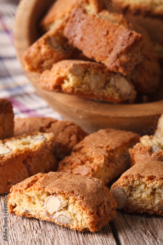 Italian almond biscotti cookies close-up on the table. vertical
