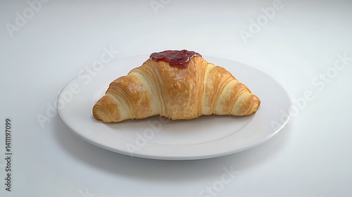 croissant, jam, pastry, breakfast, food, baked, dessert, sweet, bread, delicious, morning, bakery, hot drink, tasty, deliciously, pastry shop, food photography, fresh, homemade, simple, single, isolated, white, plate, closeup, foodstuff, image, picture, photo, buttery, golden brown, light