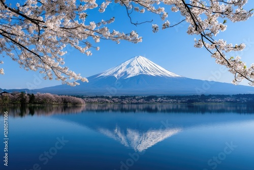 fuji, japan, cherry blossom, spring, travel, landscape, nature, scenic, lake, calm, mountain, blue, water, beautiful, sakura, cloud, tour tourism, vacation, panorama, photo, asia, japanese, view, mountain view, serenity, peace, relaxation, calmness, springtime, clear, peaceful, colours, color image, image, photo, picture, beautiful nature, spring flower, calm water
