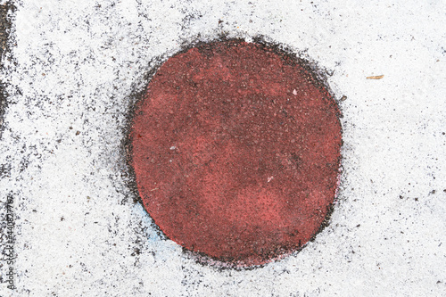 Japan flag painted on the asphalt in the country's colors. Alphast texture and paint colors.