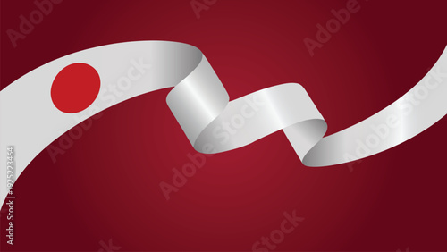 Japan Flag Ribbon Waving Banner with Red Sun Circle Symbol Isolated on Red Background, Patriotic Japanese National Identity Design