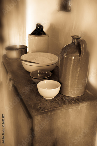 jar, jug, bowl, rural, country, vintage, old, rustic, ceramic, kitchen, cupboard