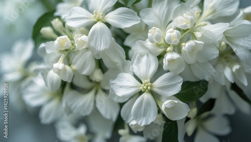 Jasmine flower pattern backdrop, overhead perspective, flat lay composition