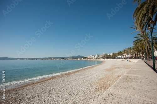 beach, promenade, palm tree, sea, ocean, mediterranean, bay, coast, coastal, sunny, sunshine, nobody, alicante, spain, europa, calm, tranquil, idylli, resort, horizontal