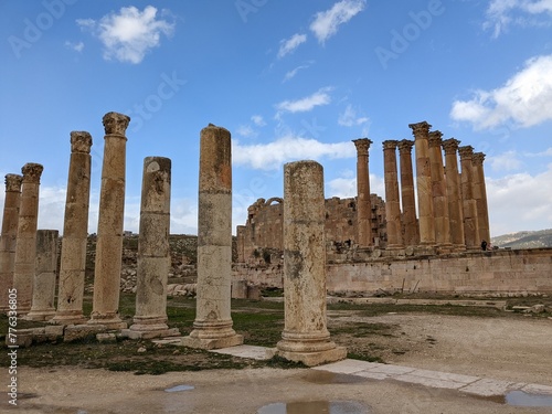 Jerash city ancient Roman structures,Gerasa, Jordan, hippodrom, amphiteatre,theatres and columns of the ancient Roman civilization made out of sand and