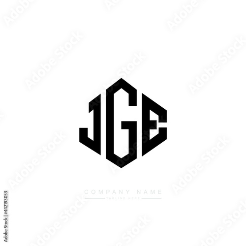 JGE letter logo design with polygon shape. JGE polygon logo monogram. JGE cube logo design. JGE hexagon vector logo template white and black colors. JGE monogram, JGE business and real estate logo.