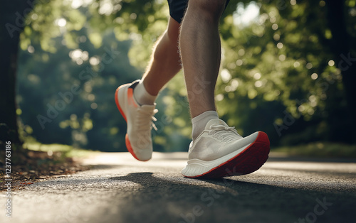 Jogging man in city park, promoting exercise, fitness, and a healthy lifestyle outdoors.